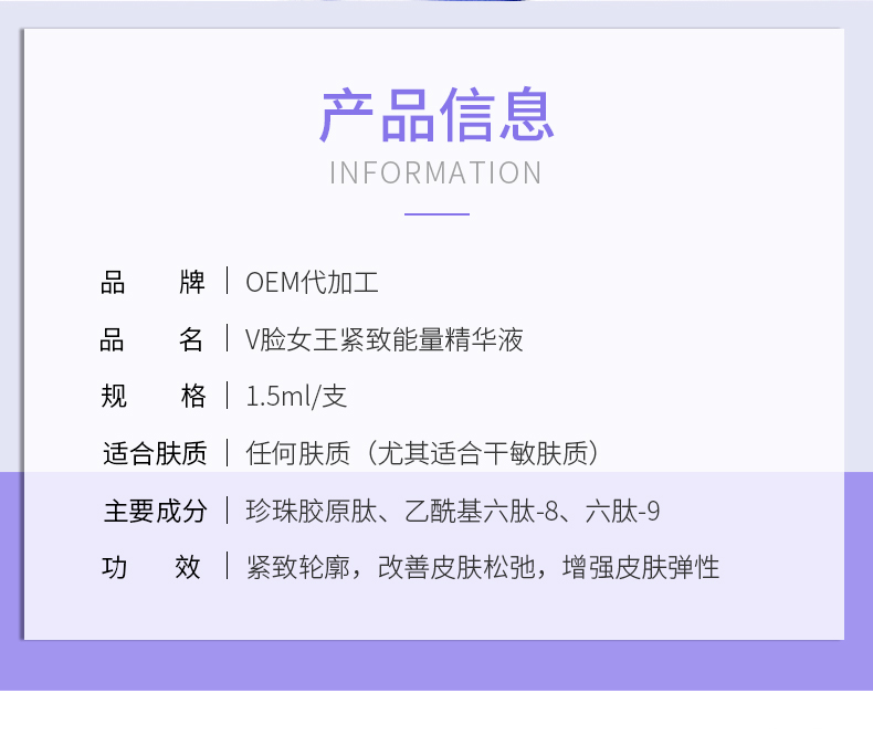 极简配方次抛 V脸女王紧致能量精华液 OEM/ODM贴牌加工